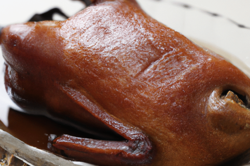 Eine traditionelle Weihnachtsente, knusprig gebraten mit einer leckeren Orangenfüllung.
