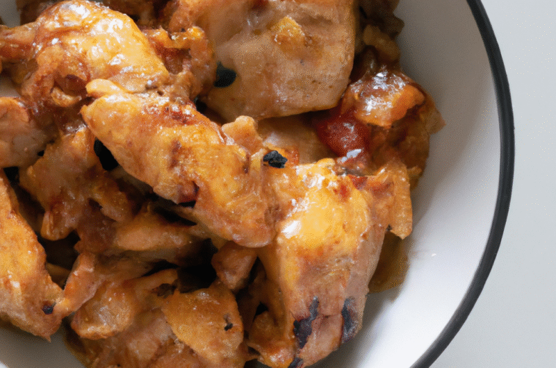 Ein traditionelles, cremiges und herzhaftes Hühnerfrikassee, das mit Reis serviert wird.