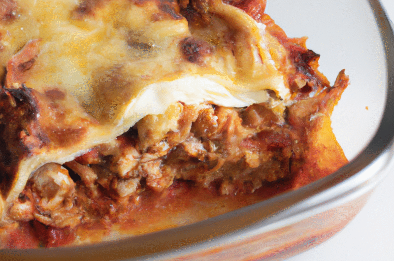Eine köstliche, herzhafte Lasagne, zubereitet mit frischen Zutaten und einer reichhaltigen Bolognese-Sauce.