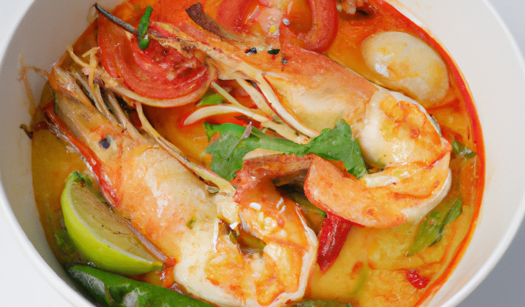 Eine traditionelle thailändische Suppe, die mit Garnelen, Pilzen und einer Vielzahl von Gewürzen zubereitet wird.