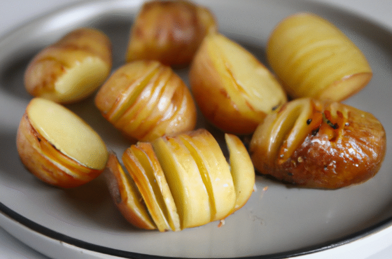 Eine leckere Version von gebackenen Kartoffeln, die in Schweden sehr beliebt ist. Sie sind knusprig, butterig und mit Kräutern gewürzt.