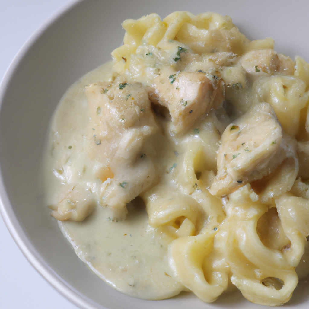 Eine cremige und köstliche italienische Pasta mit zartem Hähnchen und einer reichen Alfredo-Soße.